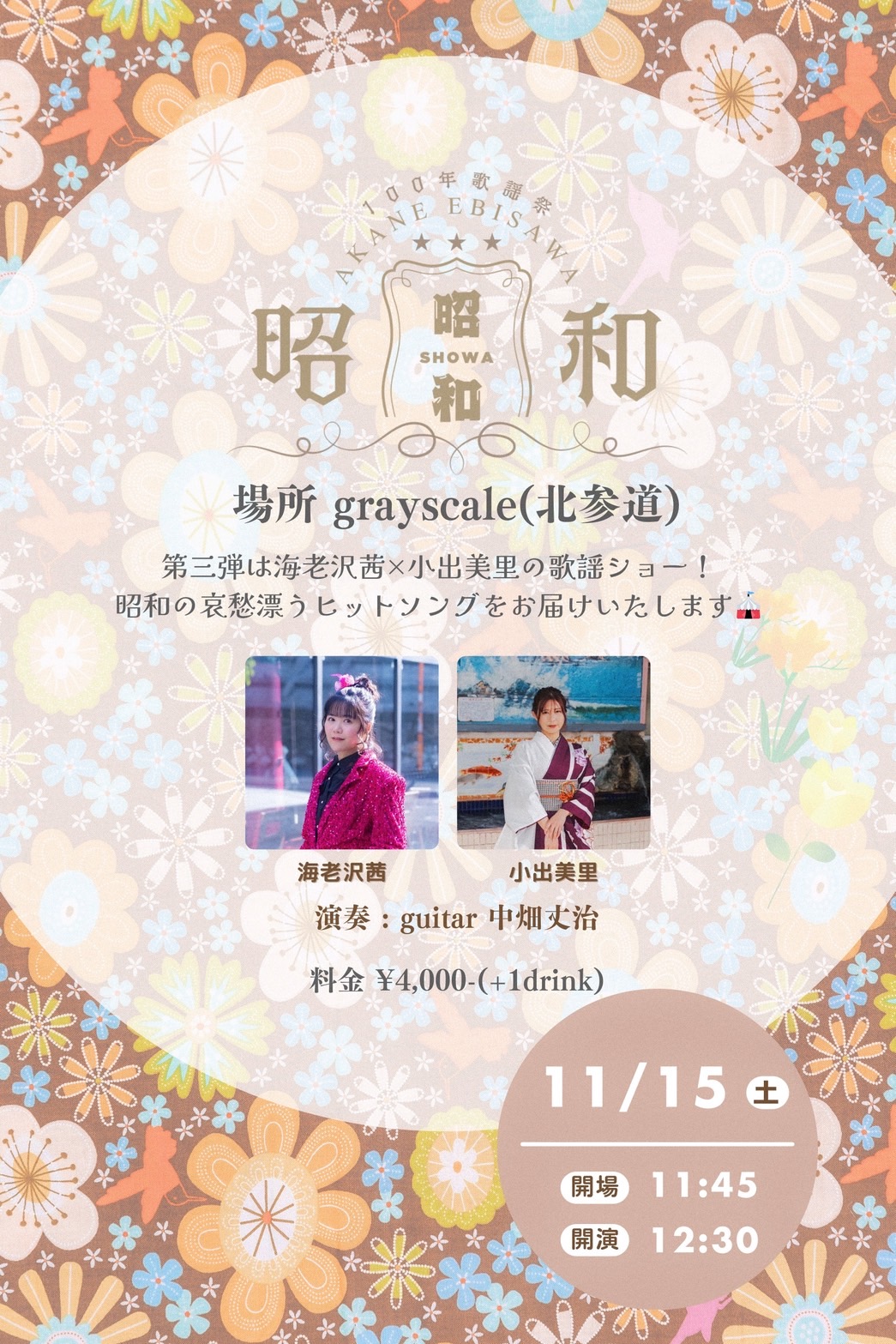 『昭和100年歌謡祭 第三弾』 今回は小出美里さんとツーマンで 昭和の哀愁溢れる名曲お届けします🎤 2025年11月15日(土) 開場11:45/開演12:30 場所 grayscal ...more