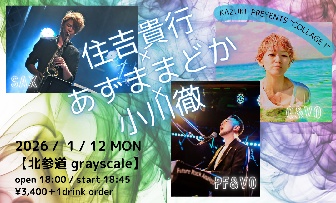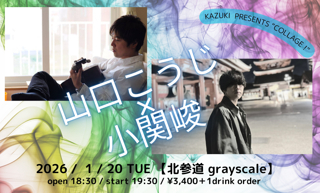 kazuki presents 【コラージュ!】 2026 /1/20(火) 北参道 grayscale 18:30 open 19:30 start ¥3,400 + 1ドリンク ...more