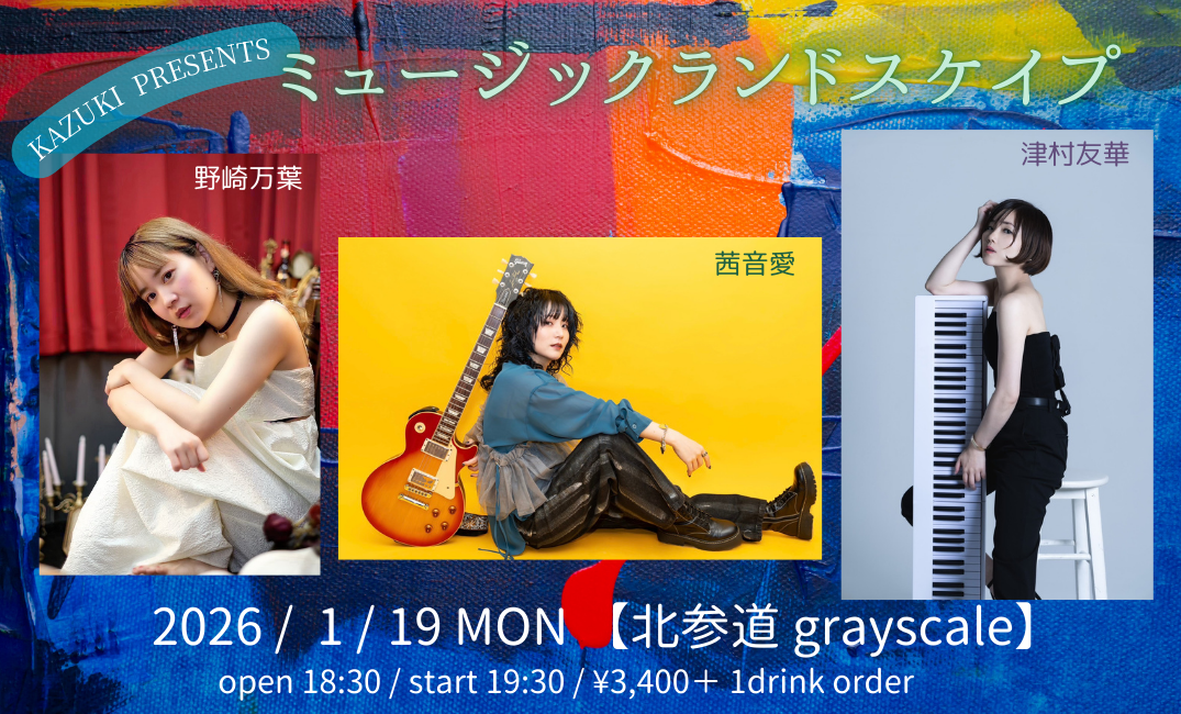 kazuki presents 【ミュージックランドスケイプ】 2026 /1/ 19(月) 北参道 grayscale 18:30 open 19:30 start ¥3,4 ...more