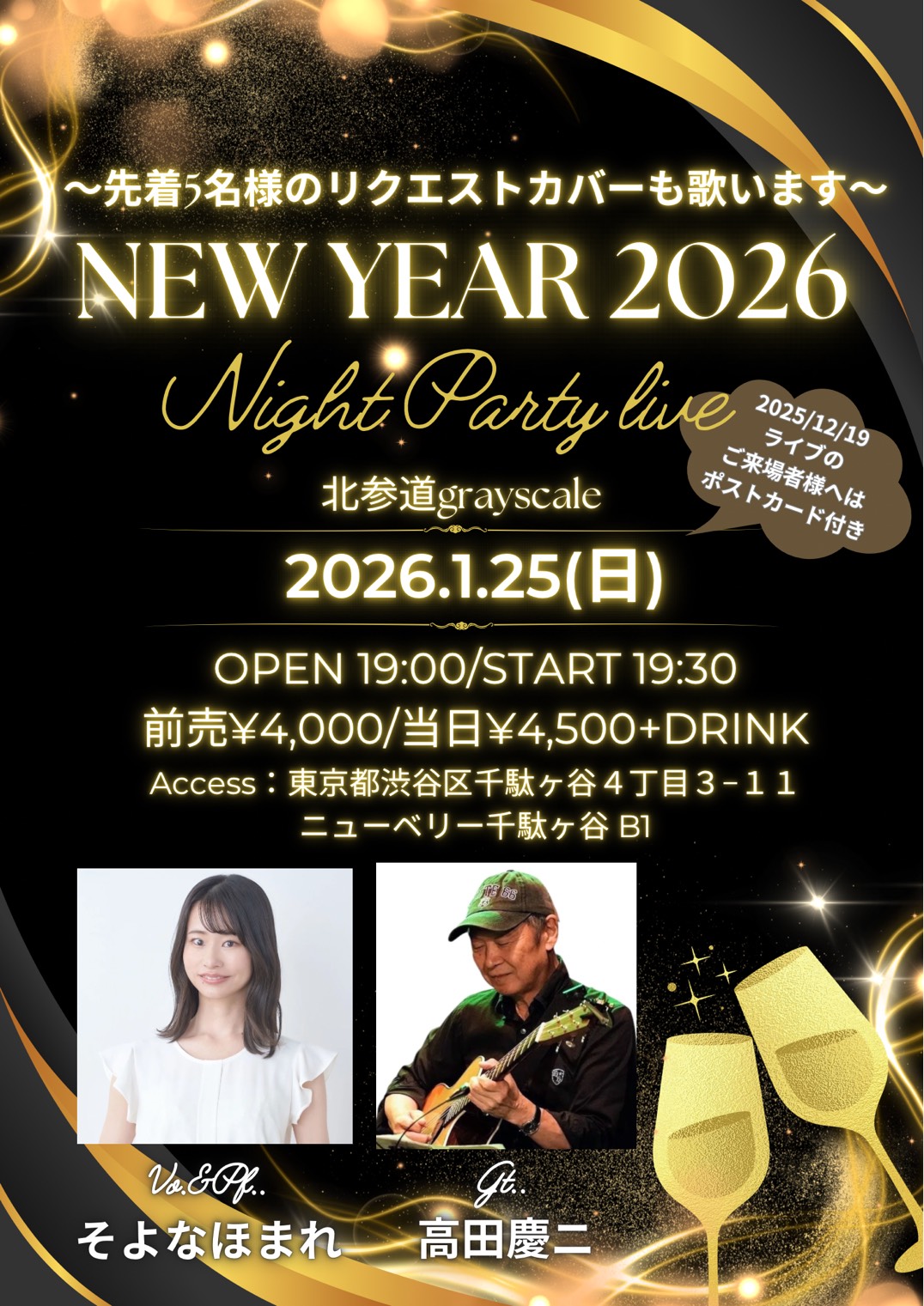 〜先着5名様のリクエストカバーも歌います〜 NEW YEAR 2026 Night Party live 北参道grayscale 2026.1.25(日) OPEN 19 ...more