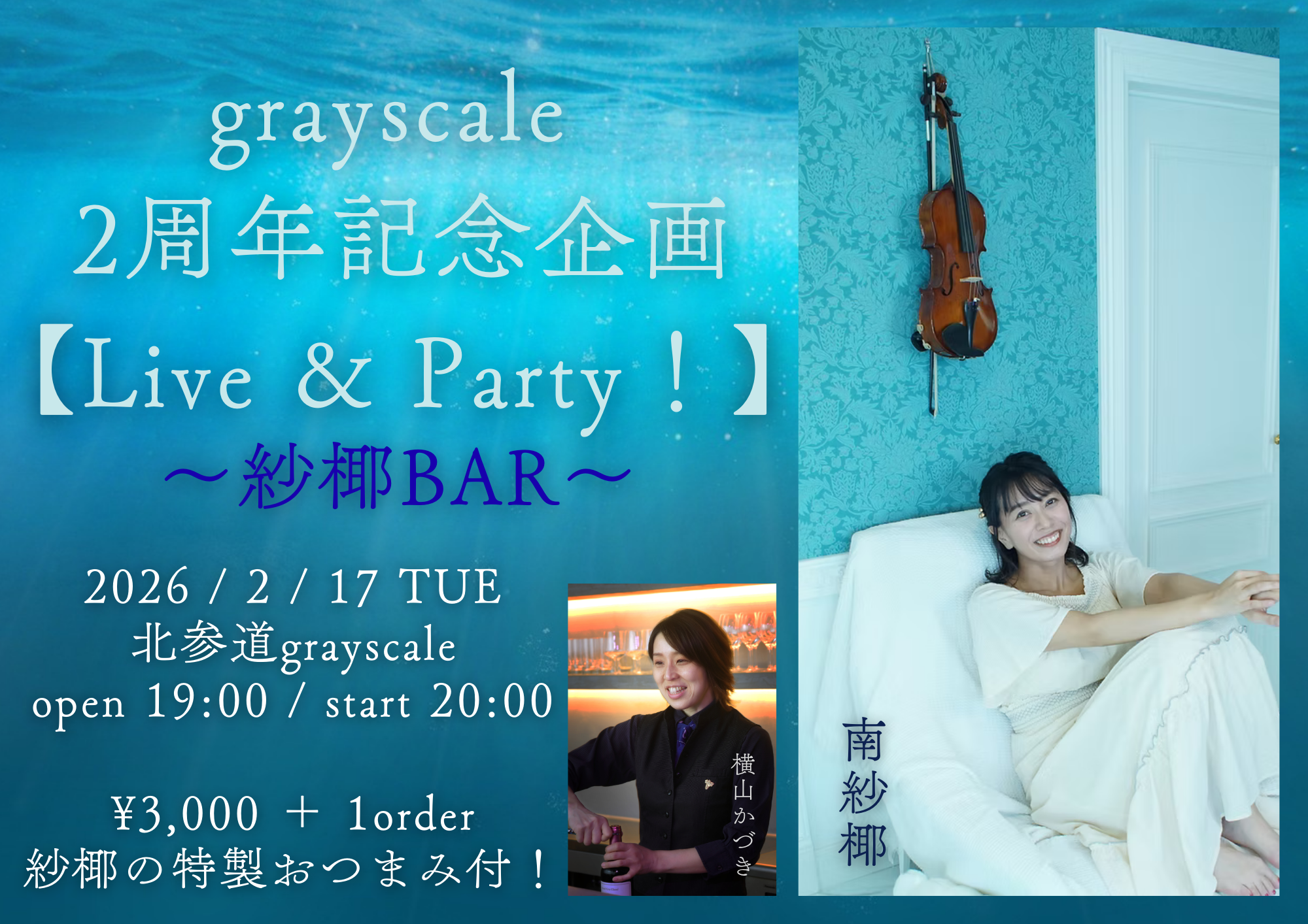 2026/02/15 grayscale 2周年記念企画 【Live & Party!】 charge : ¥3,500 + 1drink order Open 19:00 Start 2 ...more