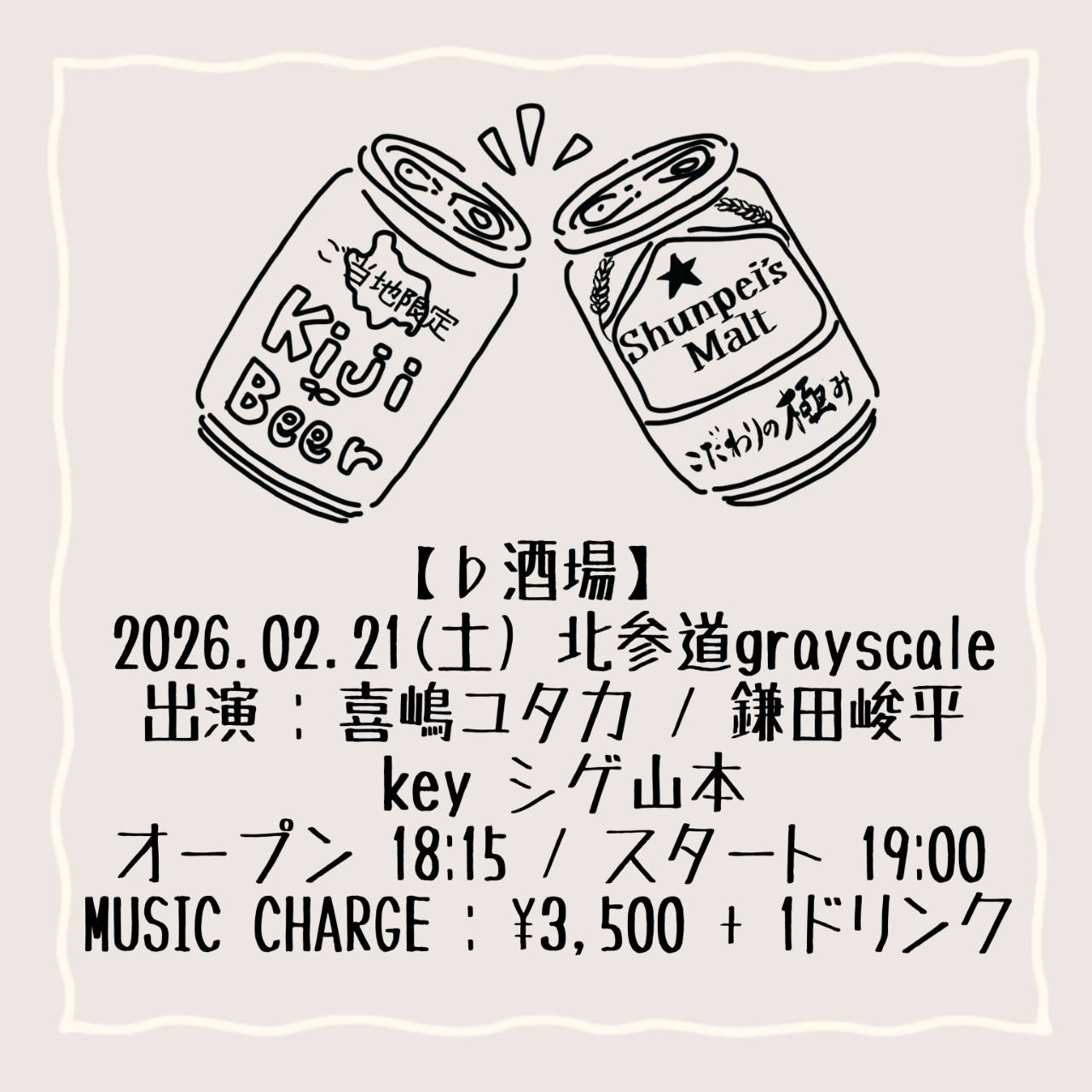 ◇喜嶋コタカ / 鎌田峻平 ◇ 【b酒場】 ◇開場 18:15 / 開演 19:00 ◇¥3,500 + order