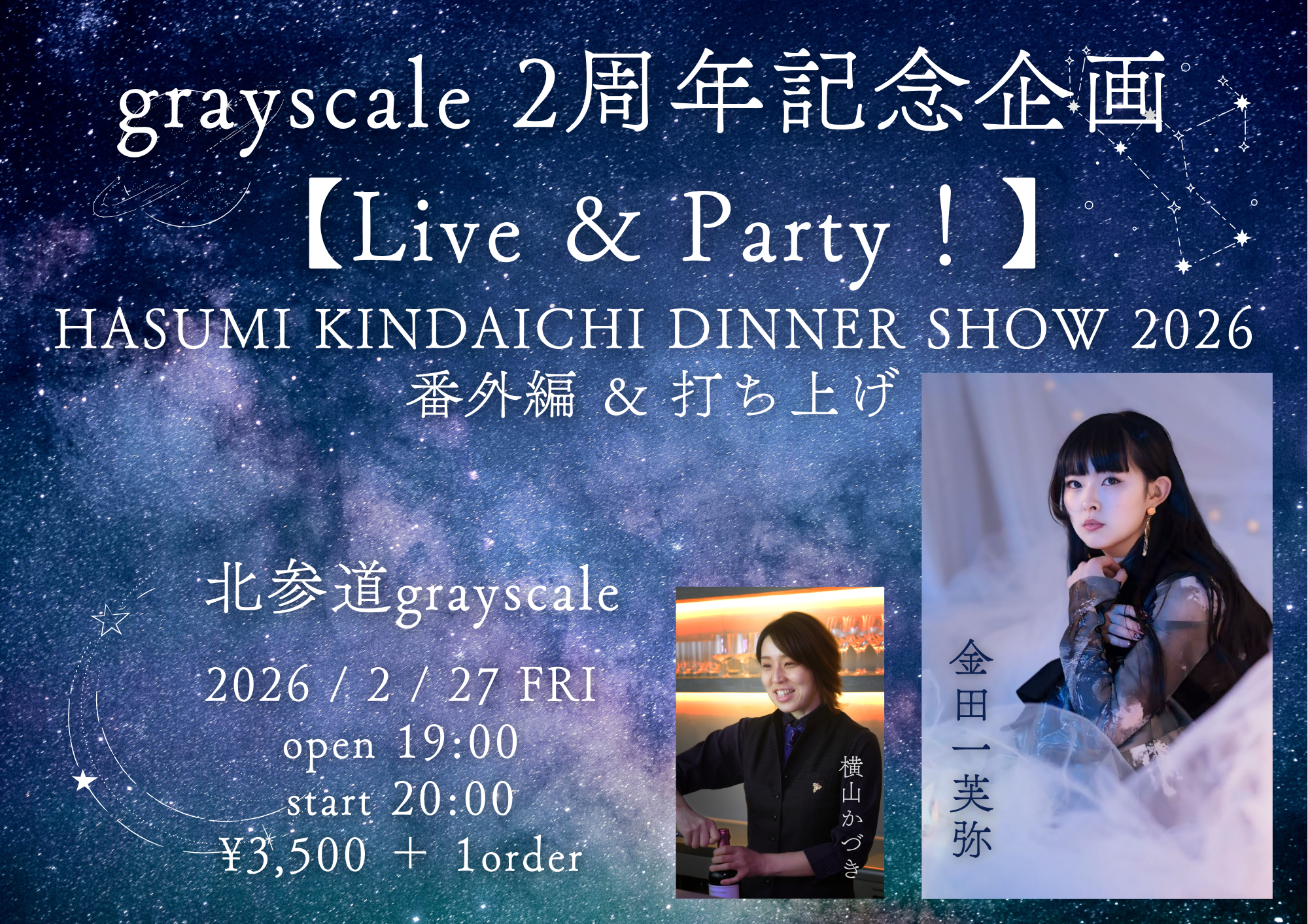 ◇金田一芙弥 ◇ grayscale 2周年記念企画 【Live & Party!】 HASUMI KINDAICHI DINNER SHOW 2026 番外編&打ち上げ ◇開場 1 ...more
